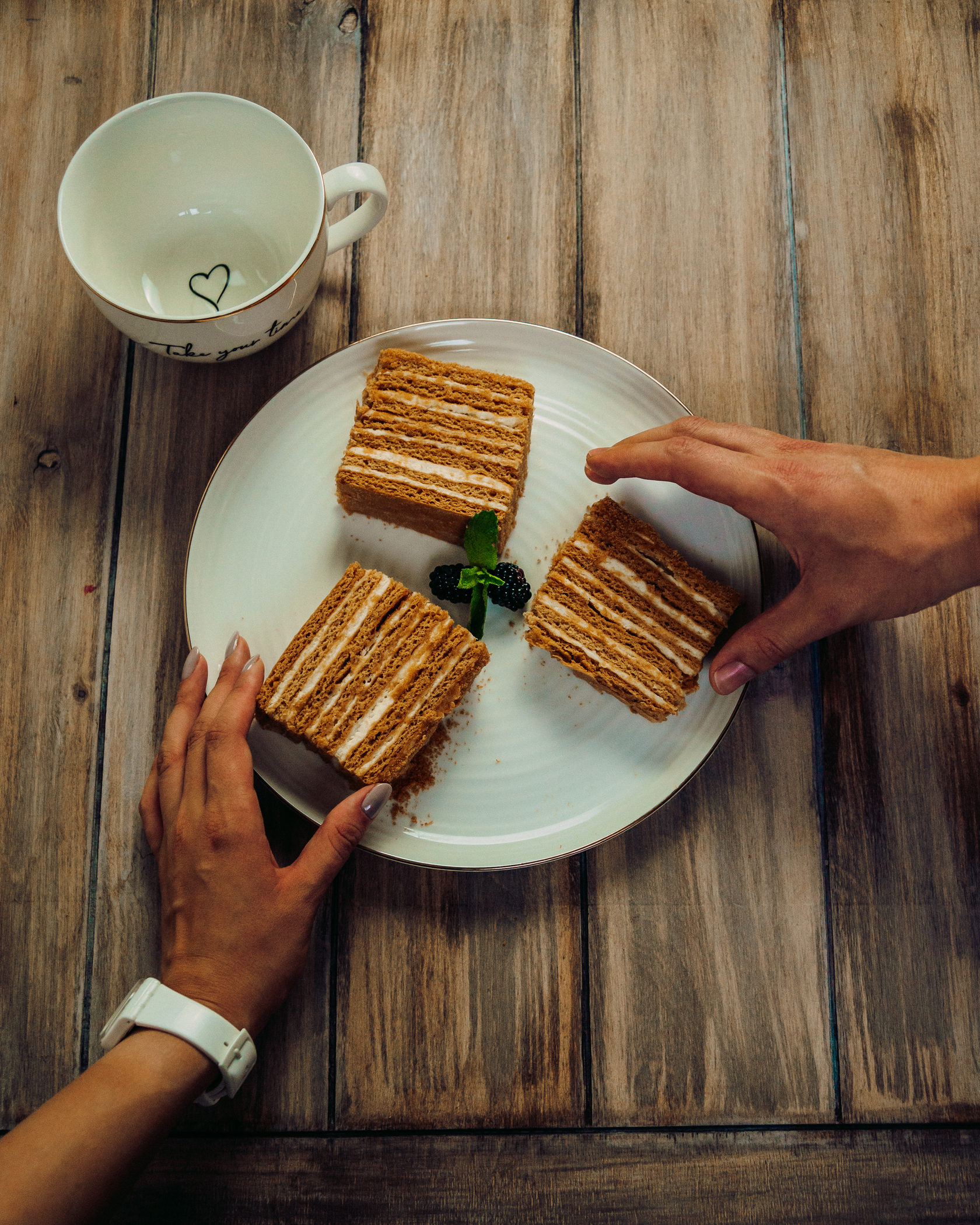 Для украшения используем свежие ягоды (сезонные), макаруны (можно выбрать любого цвета), безе, меренга (можно выбрать любой цвет), медовые сердечки, шоколад, сахарная пудра.